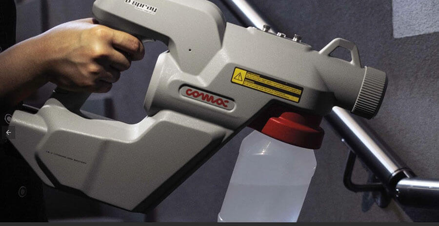 Battery powered electrostatic sprayers offer the freedom to move independent of the availability of power outlets. This allows their use in vehicles, buses, stairwells and anywhere speed of movement and mobility are a priority.